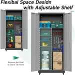 With generous dimensions (15.4D x 30.7W x 70.9H inches), this cabinet maximizes vertical space while minimizing footprint. Store power tools, hand tools, and accessories in one centralized location.