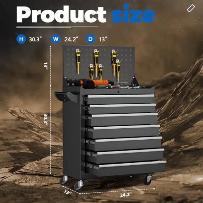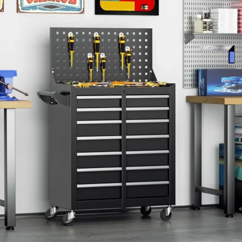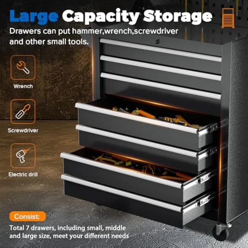 The integrated pegboard allows you to hang frequently-used tools for instant access. Arrange your workspace exactly how you prefer, with both drawer and visible hanging storage options at your fingertips.
