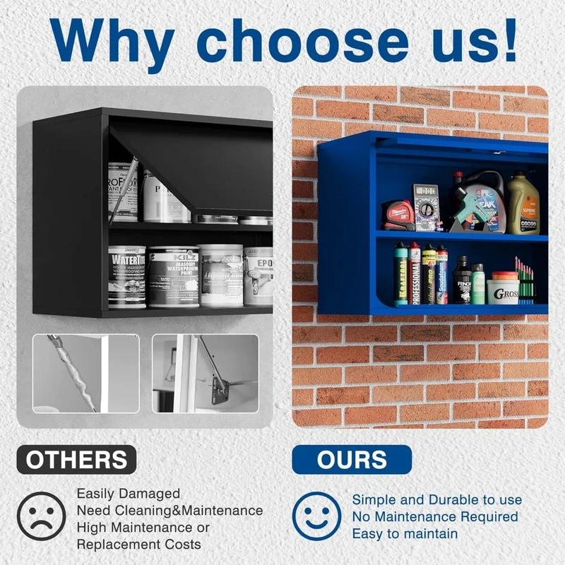 Free up valuable floor space with this smartly designed wall-mounted storage solution. Transform unused wall areas into functional storage zones, keeping walkways clear and your workspace more efficient.